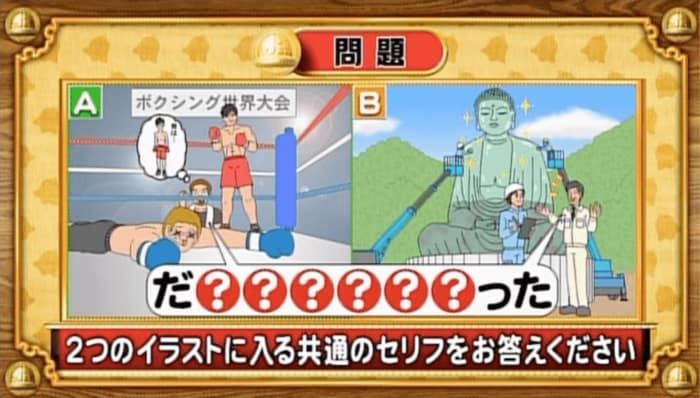 「だ??????った」。2つのイラストに入る共通のセリフを答えてください。