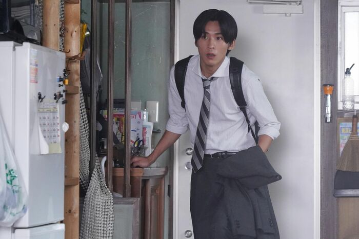 月岡夏(目黒蓮)は、娘・南雲海(泉谷星奈)と暮らすためにアパートの部屋を片付ける。