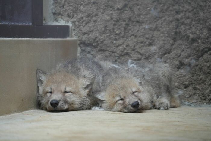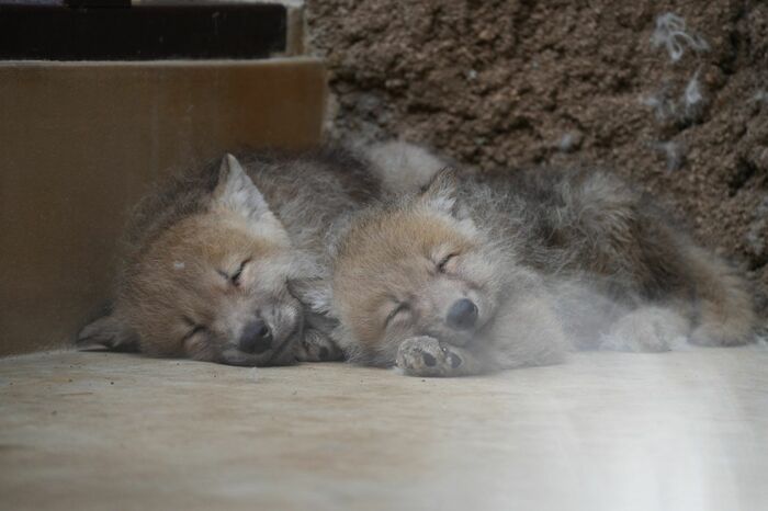 ホッキョクオオカミの赤ちゃん、2頭がピッタリとくっつきスヤスヤと眠る姿が!