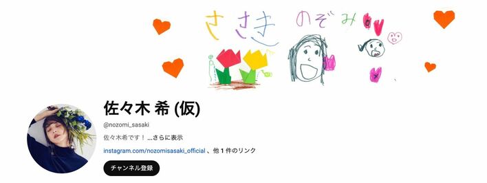 チャンネル名は『佐々木 希 (仮)』ということで、配信の概要欄では「チャンネル名は、まだ何がいいか思い付かず「(仮)」にしています」と由来を明かし、息子作だというかわいいチャンネルアートも紹介しました。