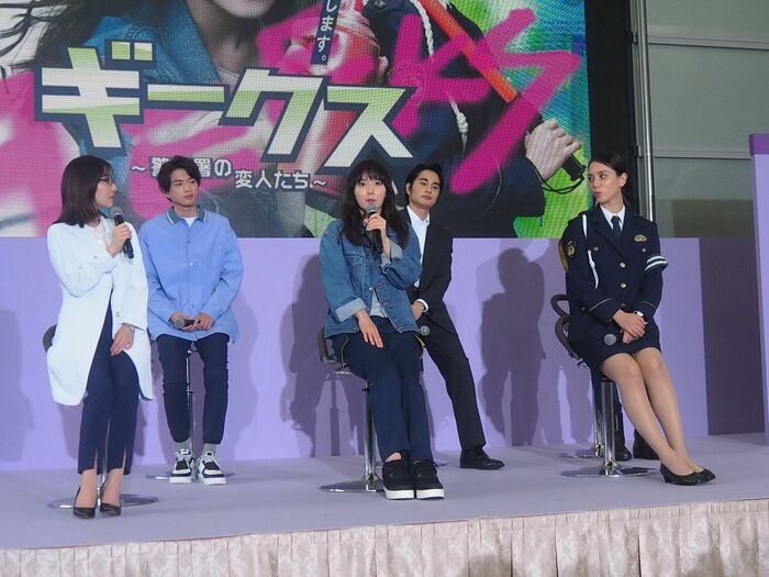 滝沢さんは「地図が大好き、バスのエンジン音が大好きという趣味を持ち、いつも片手に地図を持っている交通課の基山伊織を演じます。劇中では夏制服、冬制服、外制服を着させていただいたんですけど、今日は一番お気に入りの冬制服で来ました」とうれしそうに衣装を紹介しました。