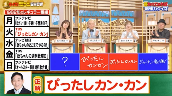 チームキャプテンとして坂上二郎さんと出演していたクイズバラエティでした。