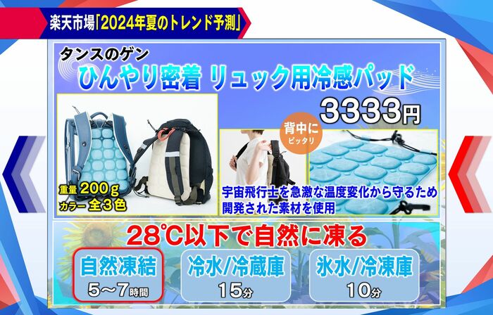 通販サイト「楽天市場」が発表した、「今夏のトレンド予測」の暑さ対策グッズも注目を集めています。