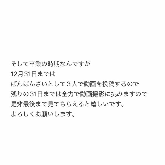 合わせてエコー写真も公開し、「妊娠と同時にもう一つ、私はばんばんざいを卒業する事に決めました。」と2024年いっぱいでグループから卒業するを報告していました。