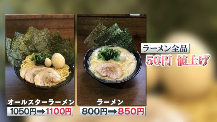 東京・品川区にあるラーメン店「濃厚豚骨ラーメン濱虎家」では、原価の高騰に加え、新紙幣に対応した発券機の導入費用が重い負担に。やむを得ず全てのラーメンを50円値上げしました。