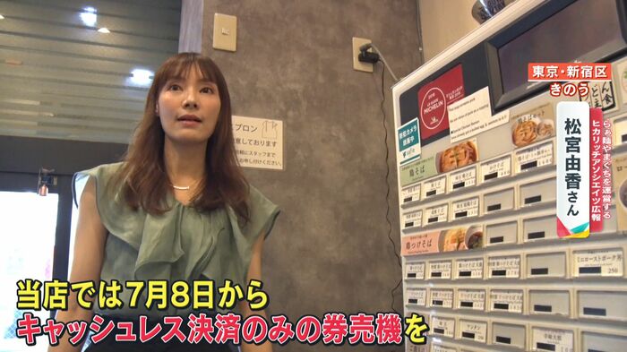 キャッシュレス券売機は、新紙幣に対応した券売機に比べると、導入コストが半分に抑えられるといいます。キャッシュレス化に対しては、客からも「普段からスマホ決済しており、ポイントがカードと連携してたまるのでキャッシュレス化はありがたい」と好印象です。