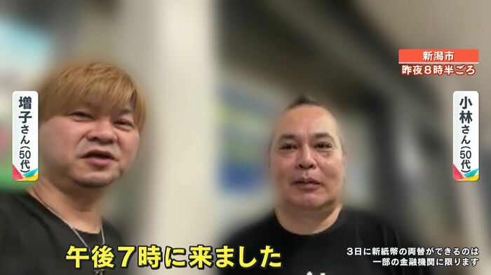 新潟県内に住む増子さんと小林さんは、誰よりも早く新紙幣を手に入れるため、銀行が開いて両替が可能になる13時間も前から並んでいたのです。