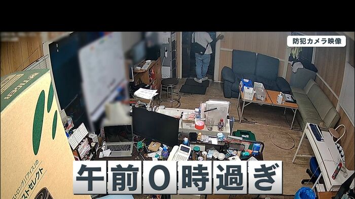 従業員がいなくなるのを待っていたかのように、ニット帽を被った人物が事務所に侵入します。