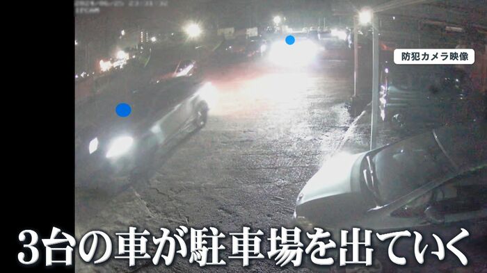 管理事務所の外側から駐車場を捉えた防犯カメラ映像を見ると、1台、2台、3台と駐車場を出ていく車の姿。同時に動いている車があることから、侵入者は1人だけではなかった可能性も…。