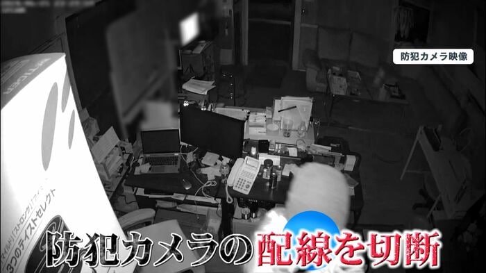 防犯カメラに近づくと、慣れた手つきでカメラの配線を切断。映像はそこで途切れました。