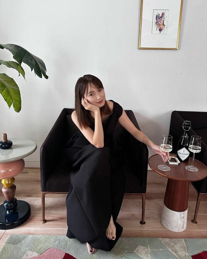 その時にも、ブラックのシックな一人掛けチェアや観葉植物、ゴールドの額縁がおしゃれなインテリアアートが飾られた自宅の写真を公開。
