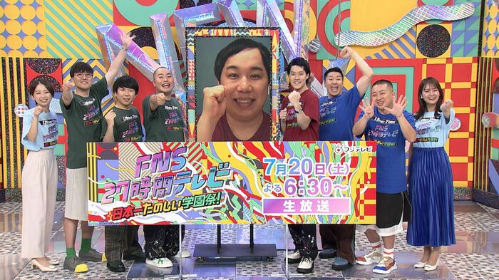 7月20日(土)18時30分より生放送される『FNS27時間テレビ2024』は、霜降り明星、チョコレートプラネット、ハナコの“カギメンバー”7人が総合MCを務め、コントあり企画ありの総合お笑いバラエティ『新しいカギ』(毎週土曜20時~放送中)をベースに、「日本一たのしい学園祭」をテーマに掲げ、さまざまなスペシャル企画やフジテレビの人気番組とのコラボ企画を実施する予定です。