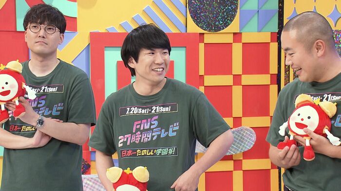 7月1日、『FNS27時間テレビ 日本一たのしい学園祭!』記者会見が行われ、霜降り明星、チョコレートプラネット、ハナコが登壇しました。(せいやさんはリモート参加)