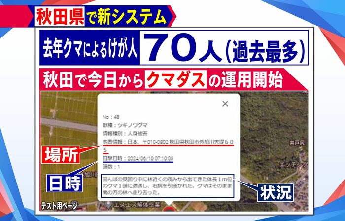 2023年クマによるけが人が70人と過去最多になった秋田県では、7月1日から「クマダス」という新システムの運用が開始されました。