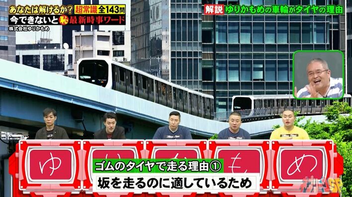 「ゆりかもめ」の名前を答える問題では、地理担当の村瀬哲史先生が「ゆりかもめ」がゴムのタイヤで走行している理由について、解説しました。