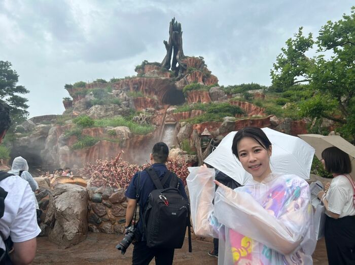 まず、鈴木アナがやってきたのは、丸太のボートに乗り、約16m の高さの山から一気に滝つぼへと落下するアトラクション『スプラッシュ・マウンテン』。
