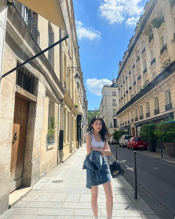 出口さんは「合間にパリ散策いっぱいできた!どこ歩いても素敵な街でした🤍」とコメントし、白のタンクトップにデニムのミニスカートを合わせた爽やか夏コーデで、セットアップのデニムジャケットを手に持ちパリの街を散策している写真を投稿しました。