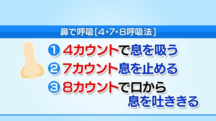 ポイントは、涼しい空気を鼻から入れて脳に届かせること。肺活量が少なくて苦しく感じてしまう場合は、「2秒・3秒・5秒」のリズムでもいいと先生は補足していました。