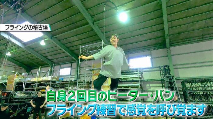 2度目のピーター・パンを演じる今年、まずはフライングの練習でその感覚を呼び覚まします。