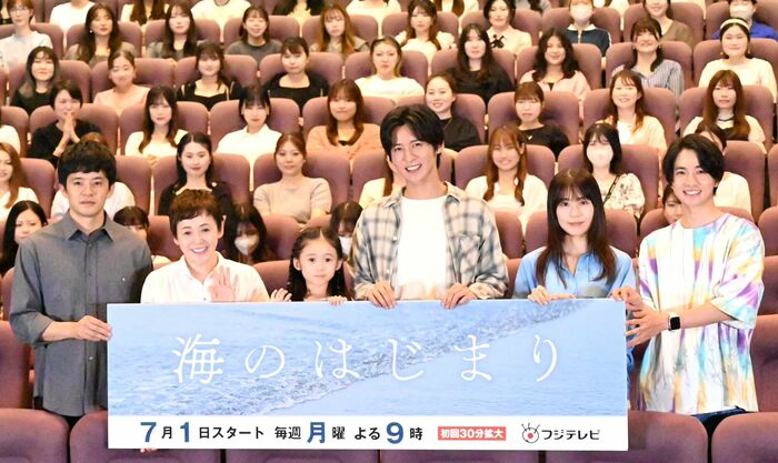 月9ドラマ『海のはじまり』の完成披露試写イベントが6月28日に行われ、目黒蓮さん、有村架純さん、泉谷星奈さん、木戸大聖さん、池松壮亮さん、大竹しのぶさんが登壇しました。