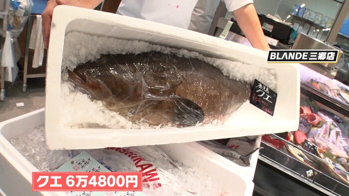 カツオ1匹2160円、6万4800円のクエまで置いてあります。