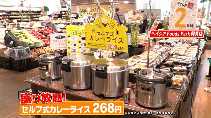 さらにルーとごはんをどれだけ盛っても、ふたが閉まれば268円という自分で盛る“セルフ式カレーライス”まで。子ども連れのお客さんを意識した、楽しくお買い物ができる売り場になっています。