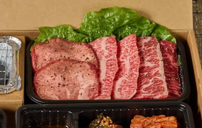 KINTANの名物30日間熟成されたタンとプライムハラミ、黒毛和牛上カルビの3種を焼いて楽しめるお弁当や…。