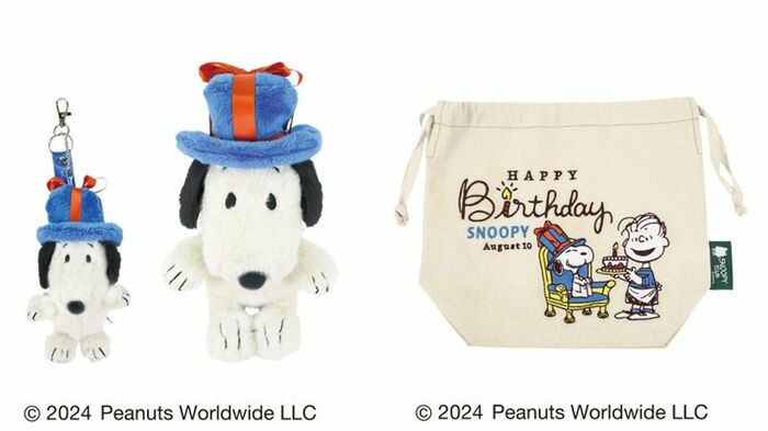 家に置いておきたくなる青に赤いリボンの帽子を被ったぬいぐるみや「HAPPY Birthday」の文字や、スヌーピーがお祝いされている様子が描かれた刺しゅう巾着などは旅行などにもぴったりです!