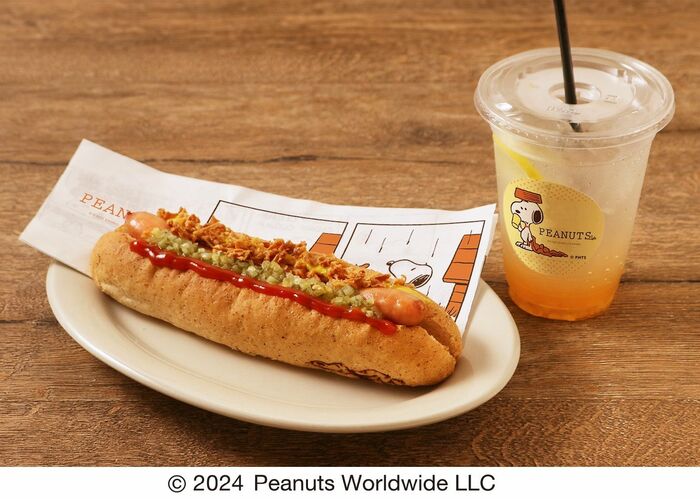 全粒粉のパンが使われたホットドッグとドリンクに、限定ステッカーが付いたセットや…。