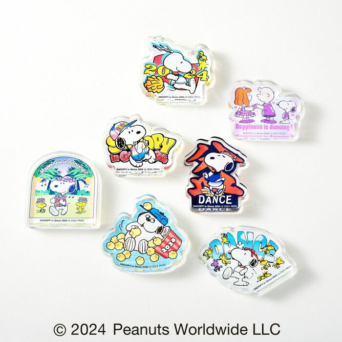 アロハシャツを着て踊っているスヌーピーたちや、盆踊りをしているスヌーピーなどが描かれたアクリルマグネットや…。