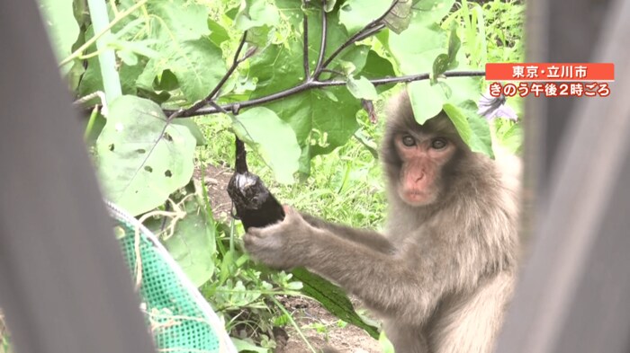 家庭菜園の「ナス」を食い荒らすと…別の家庭菜園では、キュウリを食べる姿も。