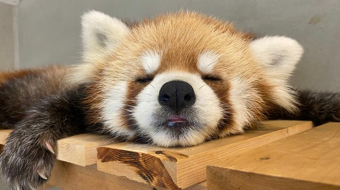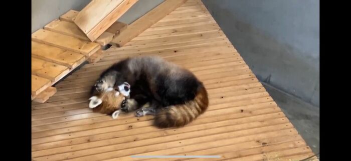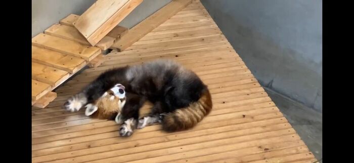 ばんざいしながら寝ちゃうレッサーパンダ「風花」