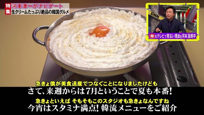 映像は「生クリームたっぷりの韓国グルメ」の紹介に切り替わり、河本さんがナレーションをあてたのですが…。