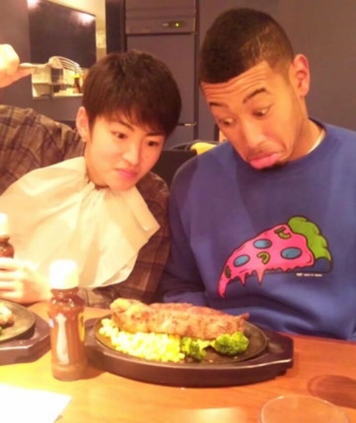 料理を食べようとしている佐野さんの横で、変顔を披露する関口さんのおちゃめな様子も!