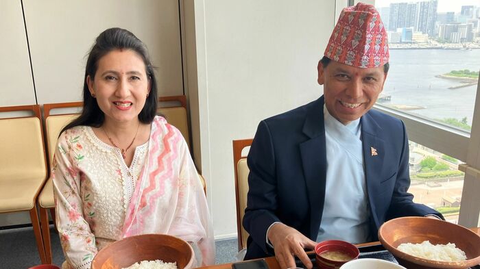 駐日ネパール大使のドゥルガ バハドゥール スベディ氏と夫人も、「DAIBA」を訪れ、ネパール風チキンカレーを試食しました。