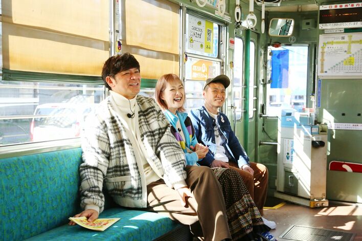 これには、大の阪神ファンの増田さんも大興奮!藤川監督をはじめ、実際に高知に住む地元の人からのオススメ情報を聞いた3人は、高知市民の生活の足“とさでん”(とさでん交通)に乗り込み、いよいよ旅はスタート!