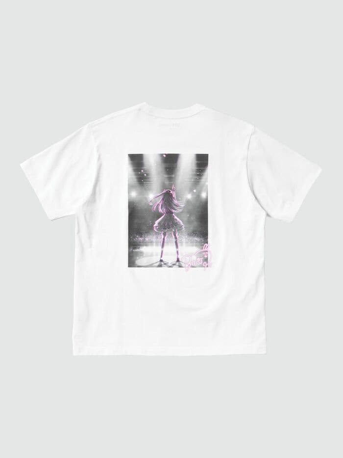 ピンクでキュートなステージ衣装をオリジナルで描き起こした1枚には、アイのオフショットをバックプリントにとり入れています。