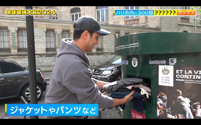 パリ市と民間の業者がゴミを減らす為、共同で設置したもので、いらなくなった洋服、カバン、靴などを入れることができます。