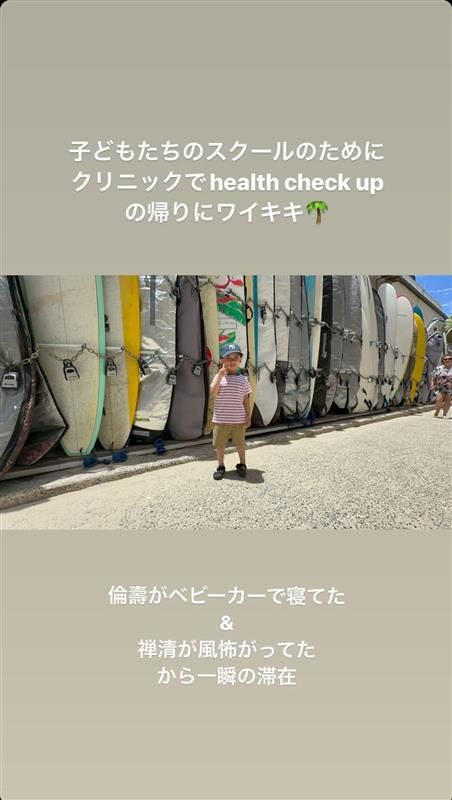 そして、「今日は入園準備のため現地のクリニックで健康診断。」と投稿文につづり、写真を投稿。