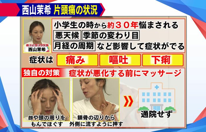 片頭痛に約30年間悩まされている 西山茉希さん: