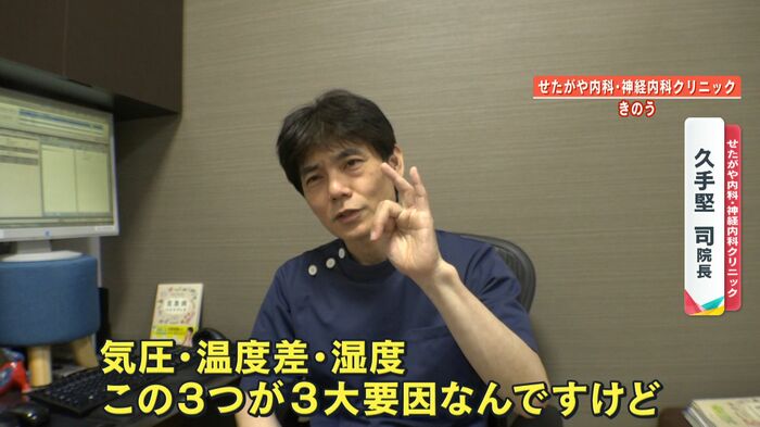 気圧・温度差・湿度。この3つが3大要因なんですけど。ちょうどこの時期気温も湿度も上がっていくので、そうするとより頭痛が出やすい。