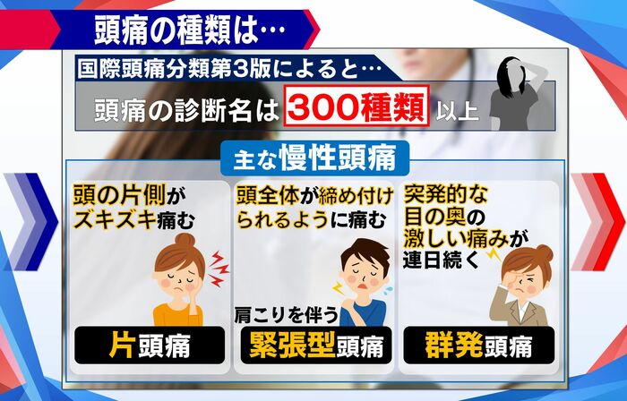 国際頭痛分類第3版によると、頭痛の診断名は300種類以上。