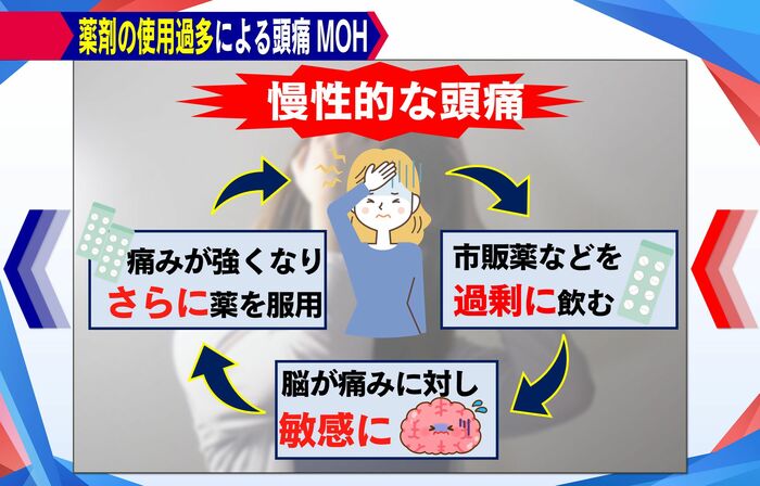 市販薬などを過剰に飲むことで頭痛が悪化し、慢性化してしまうというもの。