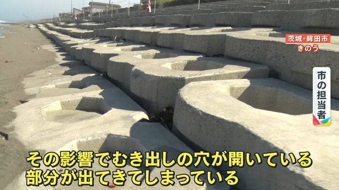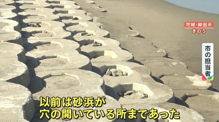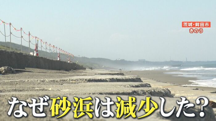 管理する茨城県によると、大竹海岸の砂浜は、南北2つの川から流入する土砂が、波に乗って運ばれることで保たれてきましたが、近年の沿岸開発により砂の供給量が減少。以前のように砂が十分に行き渡らなくなったことが原因とみています。