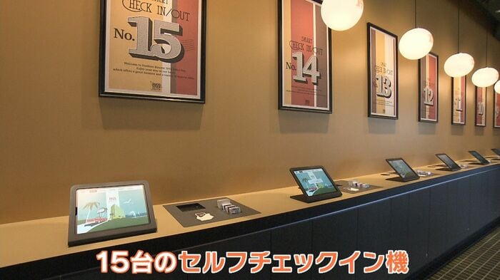 また、目を引くのが15台用意されたセルフチェックイン機。