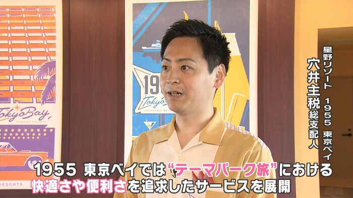 穴井主税総支配人によると「1955年は世界で初めてディズニーランドが誕生した年でもあり、1955 東京ベイでは、テーマパーク旅における快適さと便利さを追求したサービスを展開」しているそう。