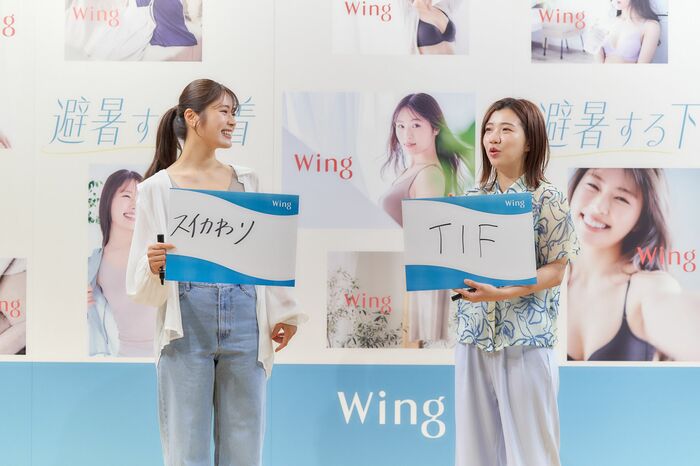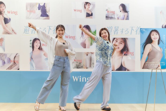 渋谷凪咲さんと福田麻貴(3時のヒロイン)さんが6月18日、下着メーカー「ワコール」が展開するブランド「ウイング」の新CM取材会に出席しました。