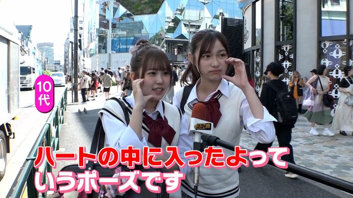 さっそく街で調査を開始!まず10代の女性が教えてくれたのは若者に人気の定番ポーズ。