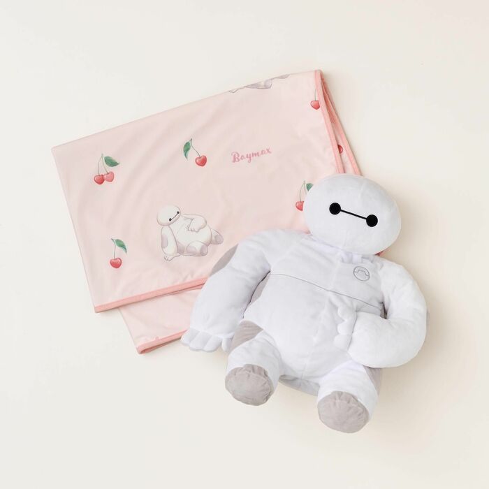 おすわりポーズのベイマックスのブランケットはピンクカラーで、さくらんぼのデザインがあちこちに。