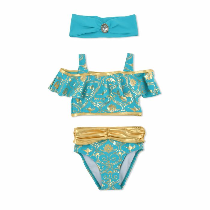 ジャスミンデザインは、セパレートタイプのスイムウェアとヘアバンドの3点セット。